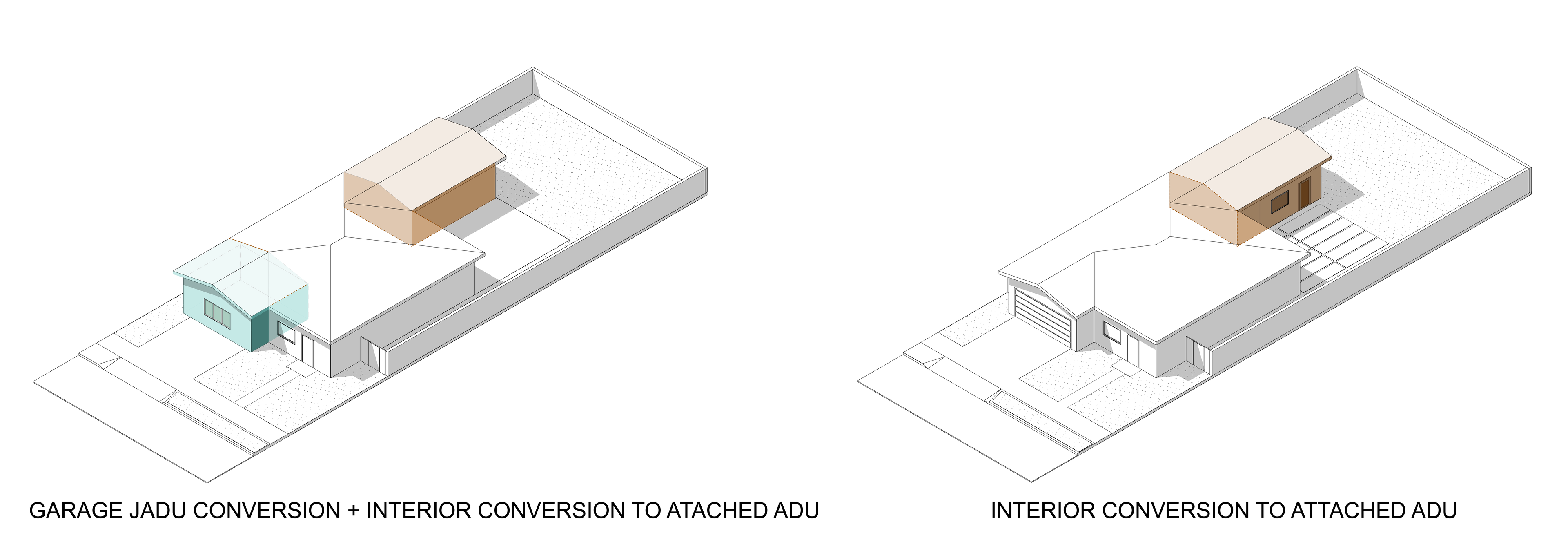 JADUs must be a conversion of an existing space within the existing single family residence and can only have a maximum area of 500 S.F. Whether that be an attached garage or any other space, Venn Studio will work with you to determine the best way to convert this space into a dwelling unit.